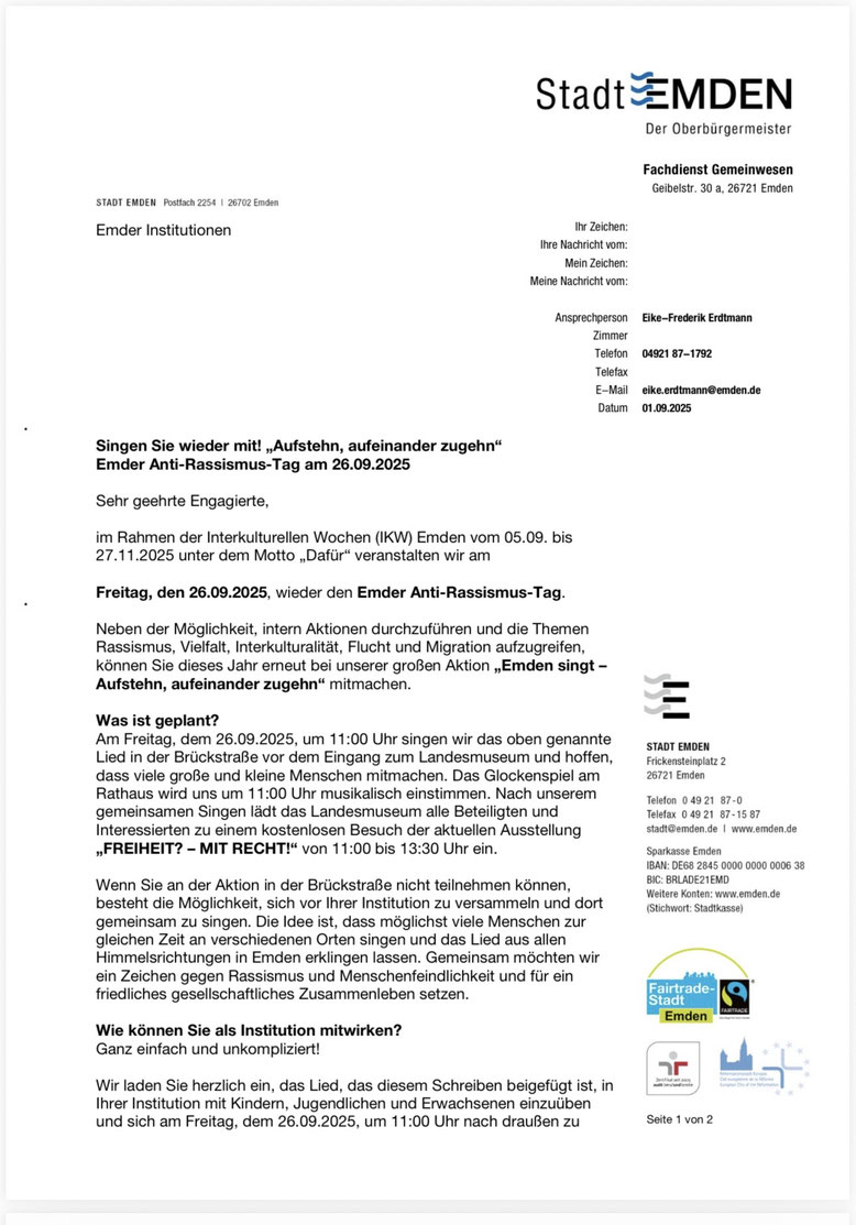 Anti-Rassismus-Tag am 26.09.2025 um 11:00 Uhr am Landesmuseum Emden!🙂